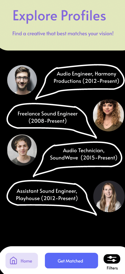 Get matched with relevant expertise (AI compatibility and creative vision matcher)